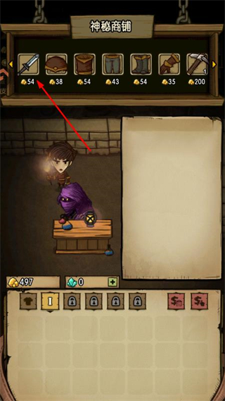 2、在神秘商铺的道具列表中,选中想要购买的装备。