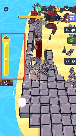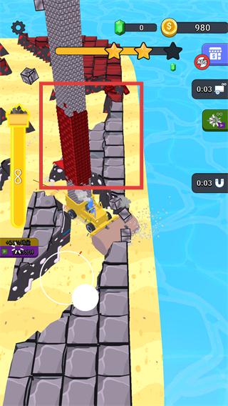 4、驾驶挖掘机挖掘红色高砖区域,破碎后可大幅提升进度条,同时积累更多金币用于后续升级。