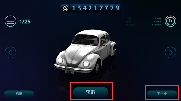 1、点击【获取】按钮获得车辆,再点【下一步】推进流程。