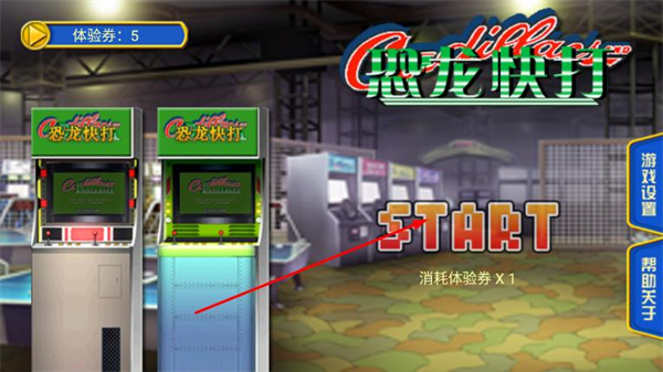 1、在游戏主界面点击START进入关卡,消耗1张体验券进入游戏场景。