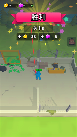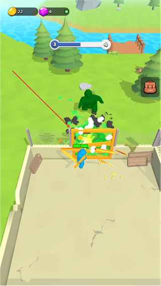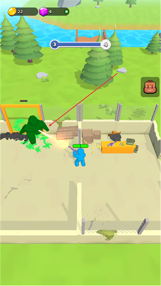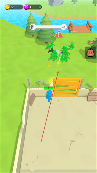 3、攻击绿色怪物,清理障碍,收集场景内资源,推进关卡进程。