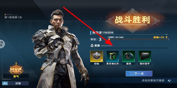3、战斗胜利后进入结算界面,获取经验和装备等奖励,提升自身等级与舰队的整体战力。