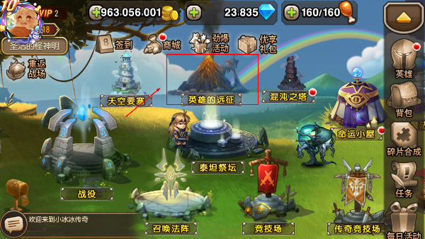 1、点击主界面的【英雄的远征】入口,参与远征玩法,需组建合适英雄队伍应对连续挑战以获取丰厚奖励。