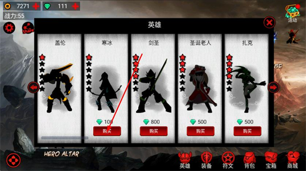 1、在游戏主界面点击底部的英雄按钮,进入英雄选择界面。