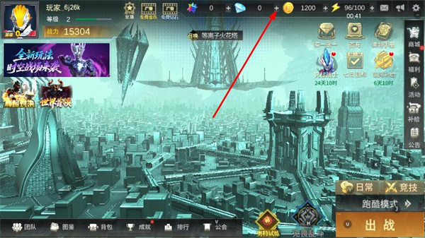 3、点击顶部的金币钻石图标,参与游戏内活动、完成任务等获取免费钻石。