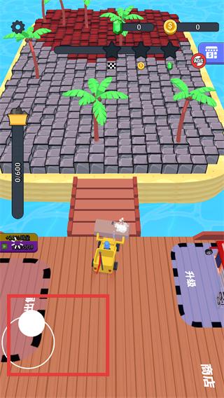 1、操控界面左下角的【方向盘】按钮,控制挖掘机移动方向,驶向需挖掘的砖块区域开启作业。