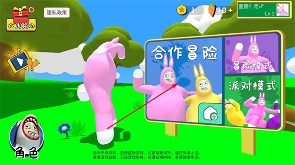 1、在游戏主界面,选择合作冒险模式,进入角色选择页面。