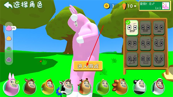 2、在角色选择页面挑选喜欢的角色,点击进入游戏。