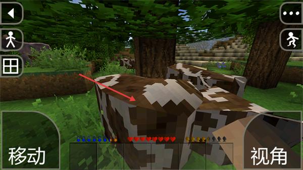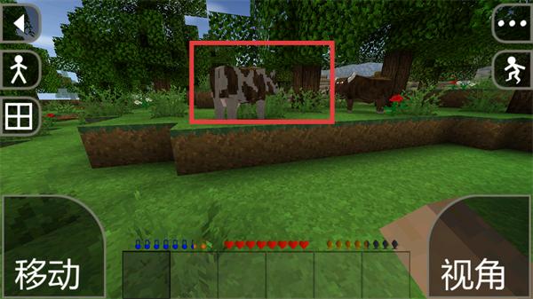 3、在场景中找到【奶牛】等生物,靠近后可进行互动,获取食物类生存资源。