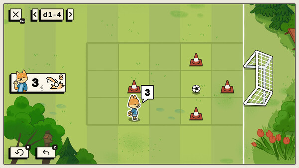 在有限的步数内,完成带球、传球、射门等操作,根据角色特点决定策略。