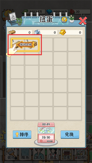 4、在【扭蛋】界面点击【材料合成】道具,消耗对应材料合成资源,为浴场运营积累物资。