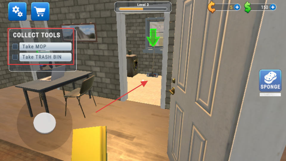1、在Level2中,根据列表,前往箭头指向区域收集【MOP】,完成后继续收集【TRASHBIN】。