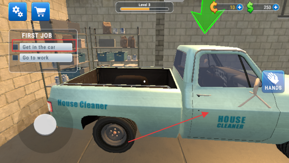 4、进入Level3,根据列表,先完成【Getinthecar】任务,前往工作地点开始新的清洁任务。