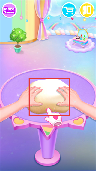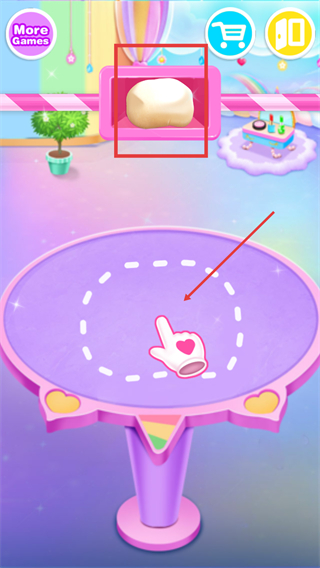 1、先将面团从容器中取出,根据提示把面团拖放到操作台上,准备进行后续制作步骤。