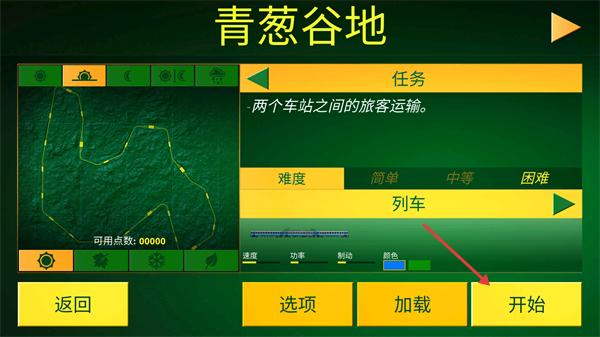 1、在【青葱谷地】关卡界面确认任务为两个车站间旅客运输,选难度后点击【开始】进入关卡。