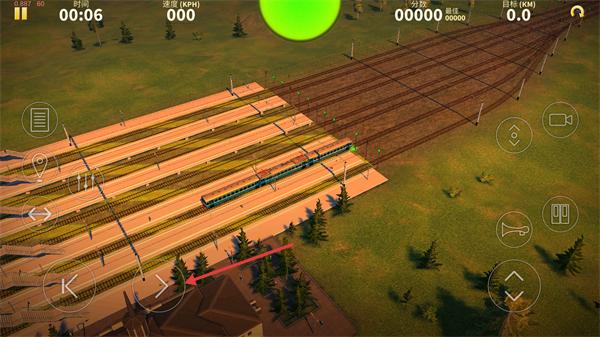 2、进入关卡后,操作左侧操控键控制火车从车站出发,沿轨道向目标方向行驶。