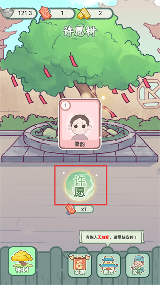 4、在许愿树里,选定角色进行许愿,可以获得能力增长。