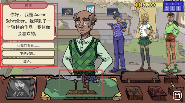 1、当角色【AaronSchreiber】展示物品时,选择【让我们看看……】,推进交易流程。