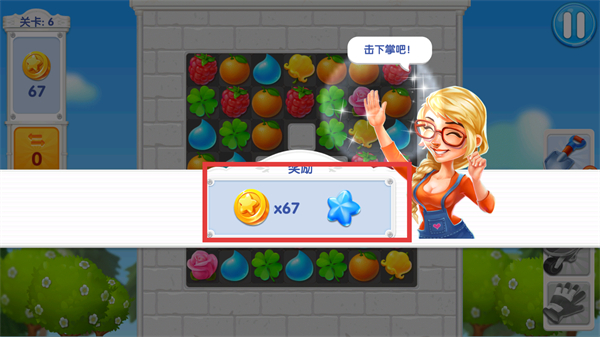 4、通关后获得金币与蓝色星星奖励,这些资源可用于宠物庄园的装饰翻新,助力小镇改造。
