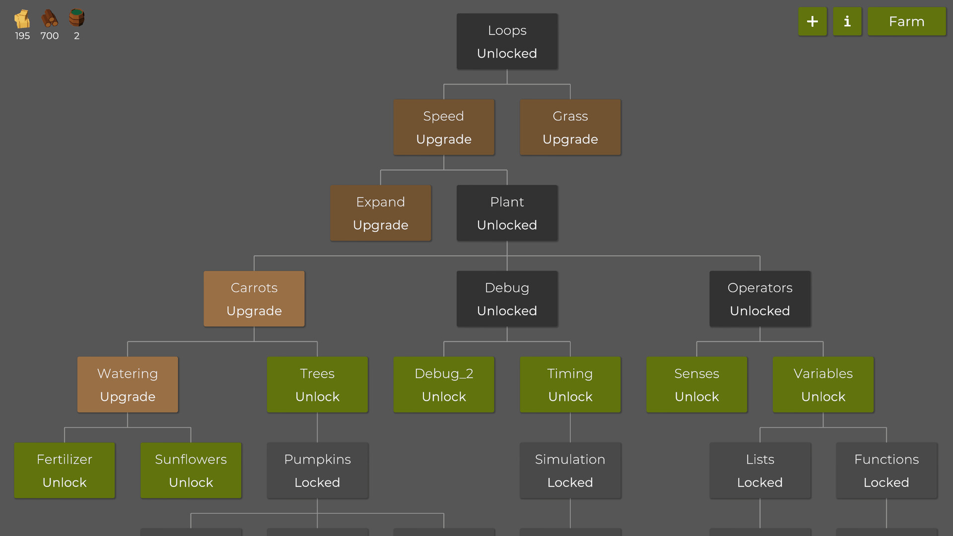编程是用类似于python的简单语言完成的。游戏的开头旨在教你所需的所有基本编程概念,通过逐一解锁和解释这些概念,对初学者非常友好。