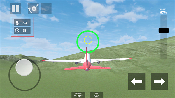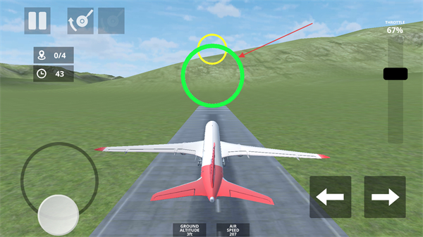 2、在起飞任务中,跟随【绿色圆圈】指引,调整右侧动力,操控飞机沿跑道滑行准备起飞。