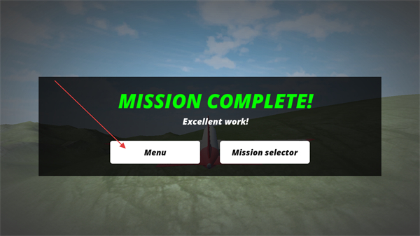 4、任务完成后出现【MISSION-COMPLETE!】提示,可点击【Menu】返回主菜单,或选择【Mission-selector】切换任务。