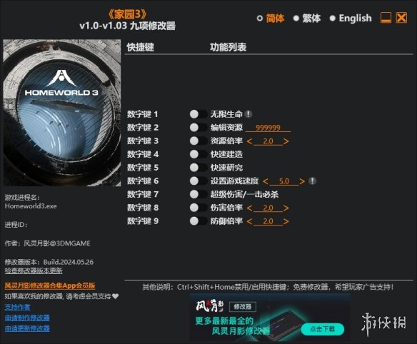>>>《家园3》v1.03九项修改器风灵月影版