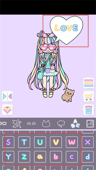 1、在气泡框编辑栏输入【LOVE】等文字,自定义气泡内容,丰富角色的表达元素。