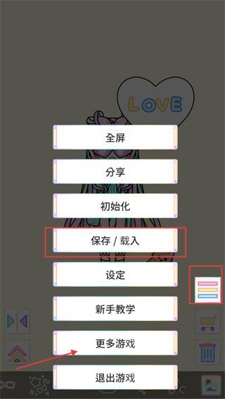 3、打开功能菜单后,选择【保存/载入】选项,可留存当前装扮或载入之前的搭配。