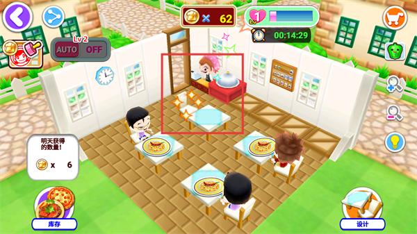 3、将准备好的菜品端给已就座的顾客,完成订单获取金币,提升餐厅的服务评分和等级。