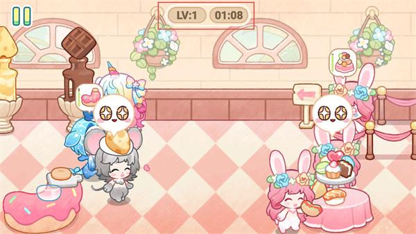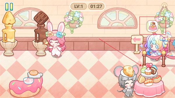 2、操控角色与场景内的【甜点】类物品互动推进游戏。