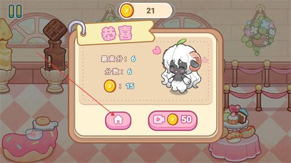 4、关卡结束后,结算界面显示分数,可点【主页】返回。