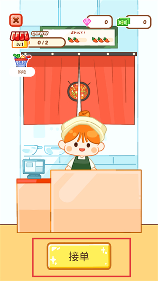 1、点击界面下方的【接单】按钮,接受新订单,开启美食制作流程,获取客人需求并准备后续操作。
