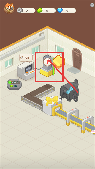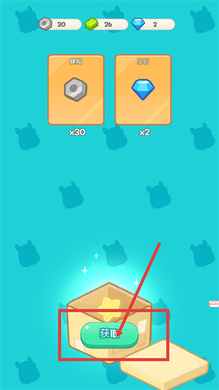 4、完成对应任务后,点击宝箱的获取按钮领取螺帽与宝石,用这些资源升级设备或雇用仓鼠员工。