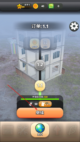 1、确认订单的需求后,点击【继续】按钮,进入对应建筑的拆家关卡。