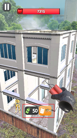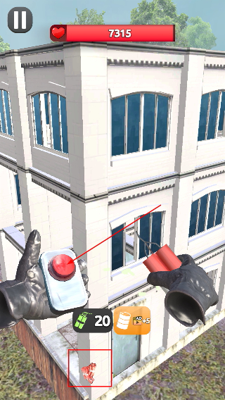 3、瞄准建筑结构点,点击【红色按钮】使用道具,对建筑造成破坏推进进度。
