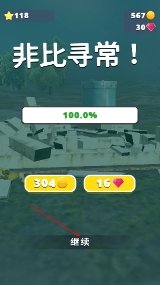 4、完成后,获取奖励,点击【继续】进入下一个关卡。
