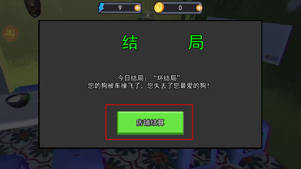 4、若触发【坏结局】,点击【店铺结算】按钮结束当前经营,后续可重新开启小店经营挑战。