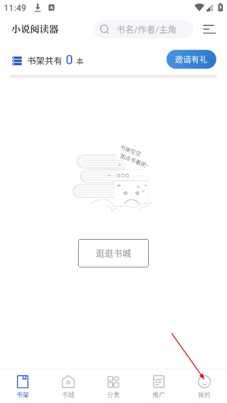 1、打开小说阅读器应用,点击底部导航栏的“我的”按钮,进入个人中心页面。