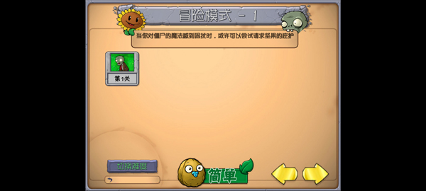 1、打开植物大战僵尸抽卡重制版ios版,进入后点击开始冒险模式;
