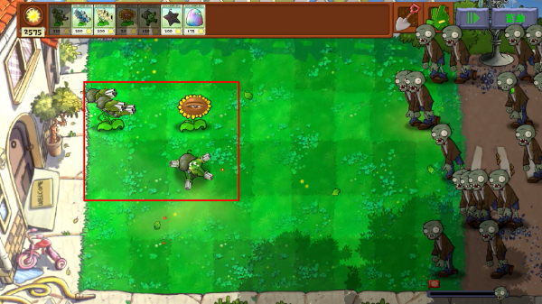 2、游戏开始先种植阳光植物,确保有充足阳光购买战斗植物。