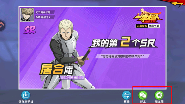 4、获得第二个SR角色【居合庵】后,可点击好友或朋友圈按钮分享招募成果给游戏好友。