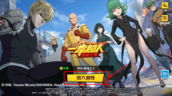 1、打开游戏后,点击【进入游戏】按钮,即可体验【一拳超人:最强之男】。