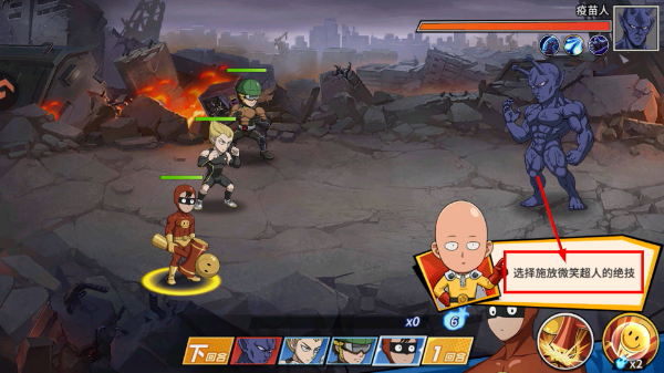 武器、格斗、科技、超能四系角色,丰富策略,自由搭配,激活强力特效! 创新的战斗机制、埼玉的激萌演出,体验一拳通关的决定一击。