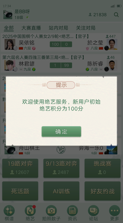 3、在浏览棋谱、观看直播或拍照数子时,可使用“绝艺”进行复盘分析,支持多层拆解,帮助深入理解对局内容,提升判断与技巧。