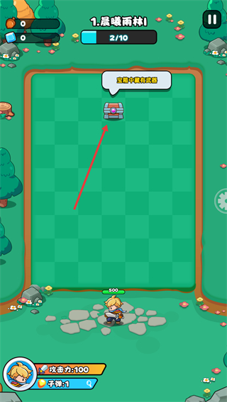1、点击开始游戏核心玩法是通过弹射操作控制角色攻击敌方单位,收集道具推进关卡进度。