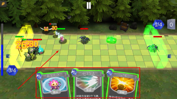 1、战斗时选择合适的随从卡牌,如【花灵射手】-【天仙战士】-【风使】,利用技能配合输出伤害,快速压制敌方单位获取优势。