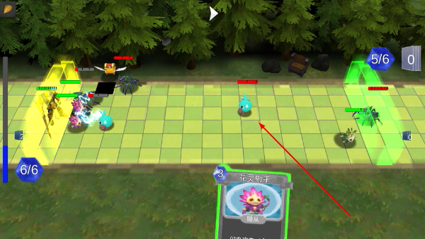 4、把握时机召唤【花灵射手】,瞄准敌方关键单位发起攻击,借助其高伤害特性快速击破敌方防线,推进战斗进程。