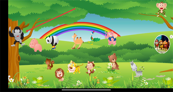 4、在动物场景,可点击动物,触发其声音播放,借听觉互动加深动物认知,完成该环节学习。