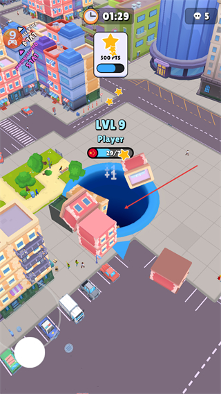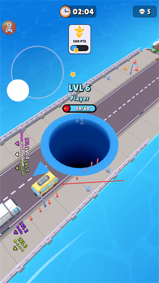 4、可以吞噬房子并不断的升级黑洞的等级,已至最后的胜利。